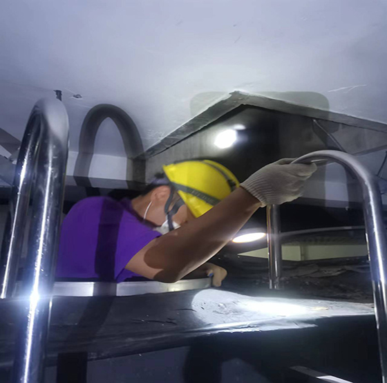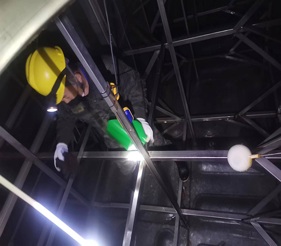2、带有爬梯的水箱可沿爬梯爬入水箱内,不带爬梯的水箱则可用竹梯2个(高度适中)分别架于水箱内、外侧,在有人保护的情况下就可沿竹梯进入水箱。